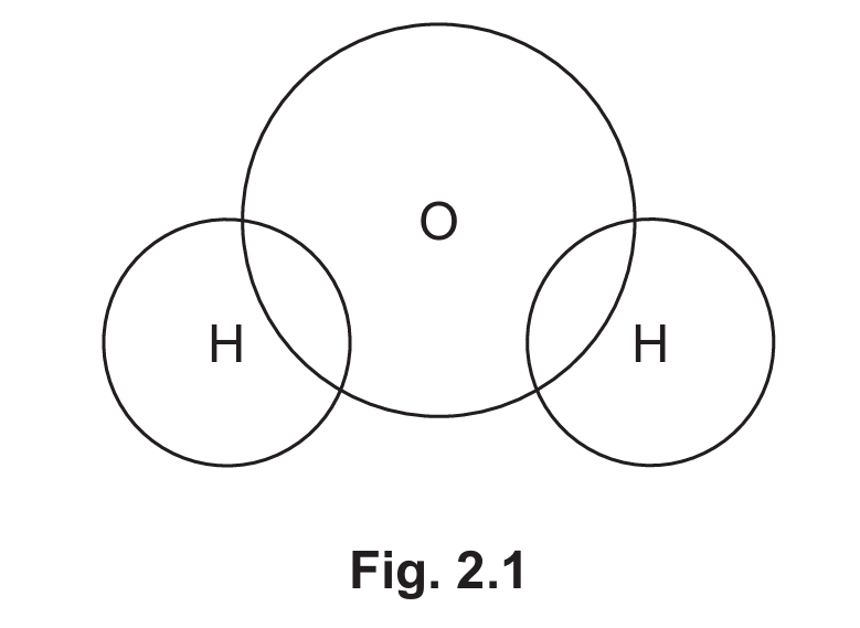(ii) Complete Fig. 2.1 to show the dot-and-cross diagram for a molecule of water. Show outer shell electrons only.