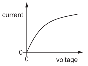 The graph shows the current–voltage characteristic for a filament lamp.