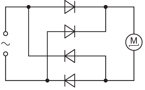 The circuit diagram shows a circuit used to run a d.c. motor from an a.c. supply.