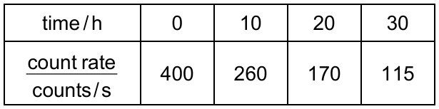 The table gives data from an experiment to show how the rate of decay of the isotope varies with time.