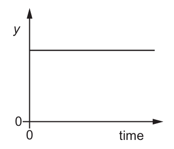 A train is on a straight track. The graph shows how a quantity y varies with time.