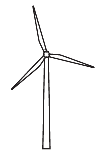 The mass of air hitting the blades of a wind turbine each second is \(1.5 × 10^{4}\) kg.