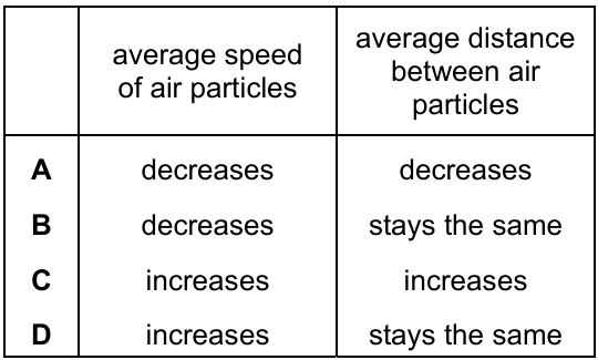 What is the effect on the average speed of the air particles in the bottle and the average distance between them?