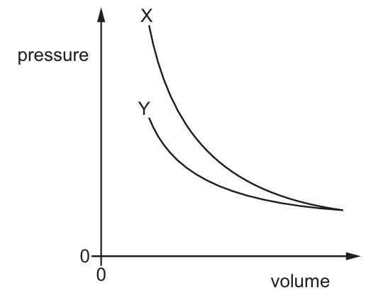 Curve X on the graph shows the results that would be expected for a fixed mass of air at constant temperature.