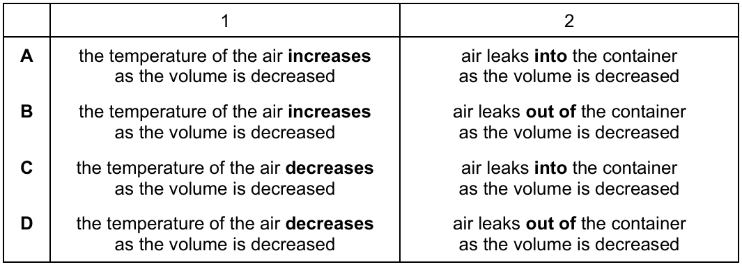 In an experiment to investigate the relationship between the volume of a sample of air and its pressure, the volume of the sample is decreased and its pressure is measured continuously.