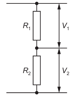Two resistors, with resistances \(R_{1}\) and \(R_{2}\), are used as a potential divider.