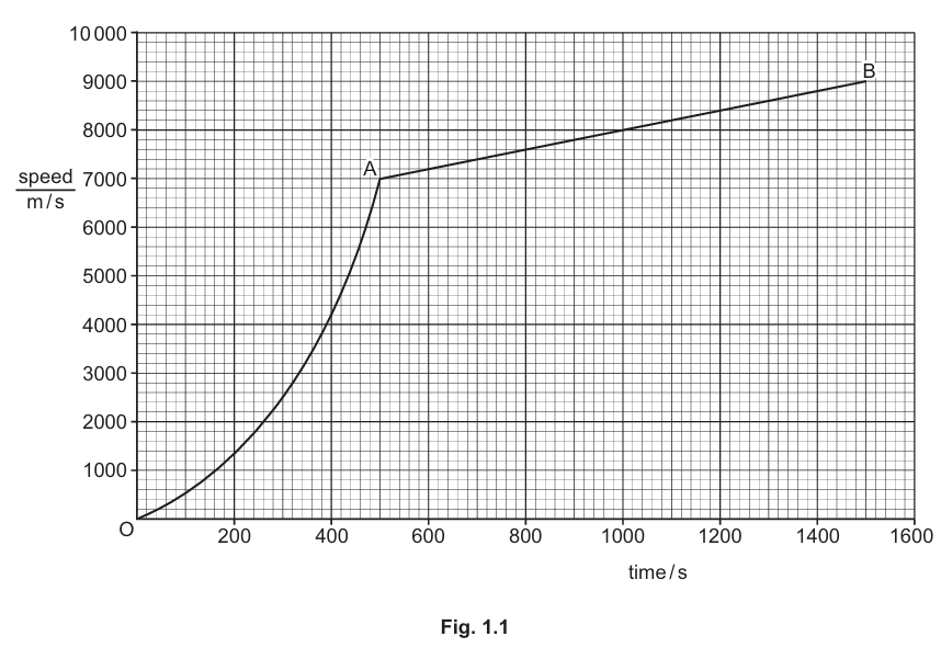 (b) Fig. 1.1 shows part of the speed–time graph for the rocket as it leaves the ground and travels into space.