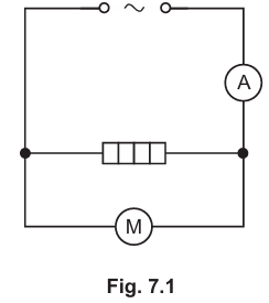 Determine the reading on the ammeter in Fig. 7.1. Explain your answer.