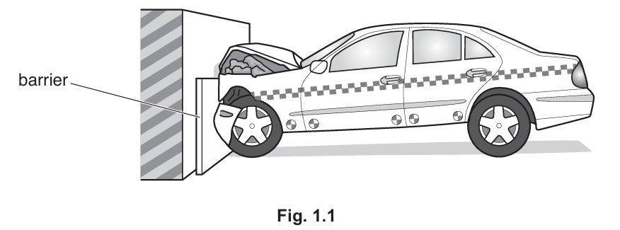 Fig. 1.1 shows the car as it hits the barrier.