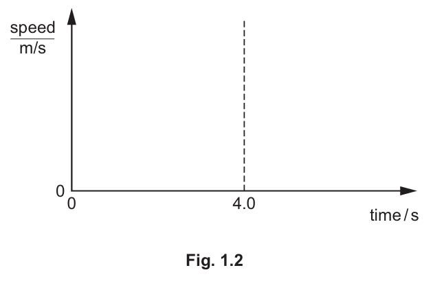 (ii) On Fig. 1.2, sketch a speed–time graph to show the motion of the car from time t = 0 until the car becomes stationary.