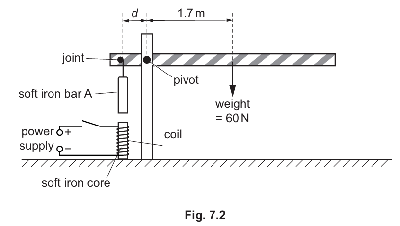 (b) Fig. 7.2 shows a coil attached to a power supply placed below the soft iron bar A.