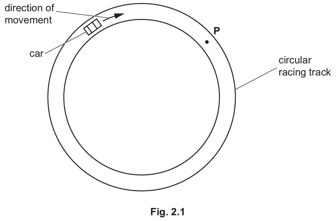 (ii) A different car travels around the same track and slides off the track at point P. State two possible reasons that cause the car to slide off the track.