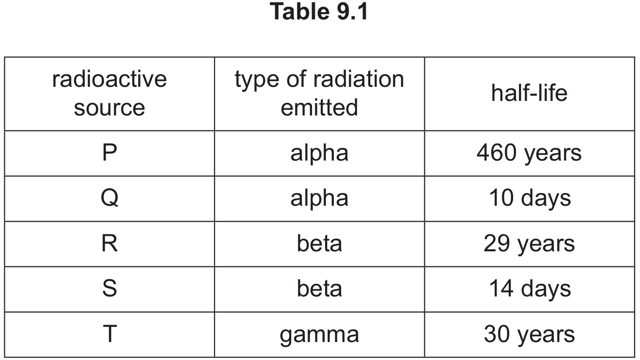 State the most suitable radioactive source in Table 9.1 for the machine in Fig. 9.2.