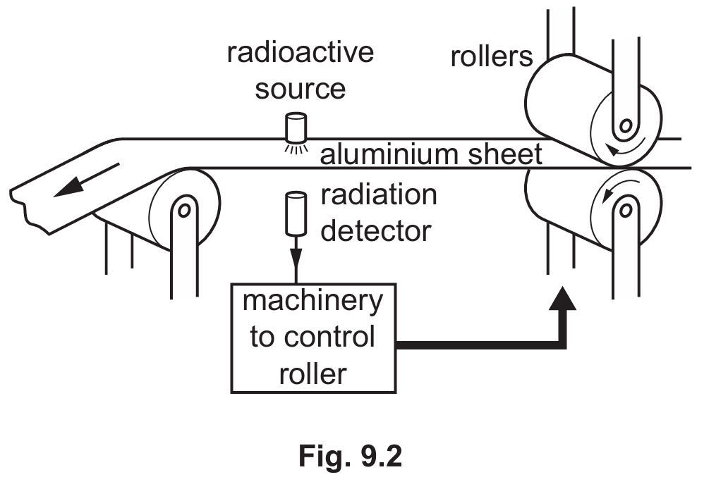 (ii) Fig. 9.2 shows a simplified diagram of a machine that produces thin sheets of aluminium of constant thickness.