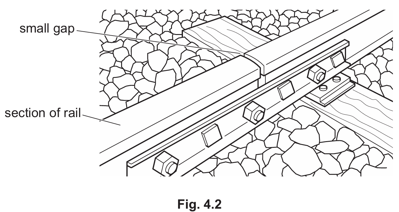 When the temperature increases, the steel rails undergo thermal expansion. At a microscopic level, the particles gain kinetic energy and vibrate more vigorously, causing the average separation between particles to increase. The gaps provide space for this increase in length, preventing the tracks from bending or buckling under stress.