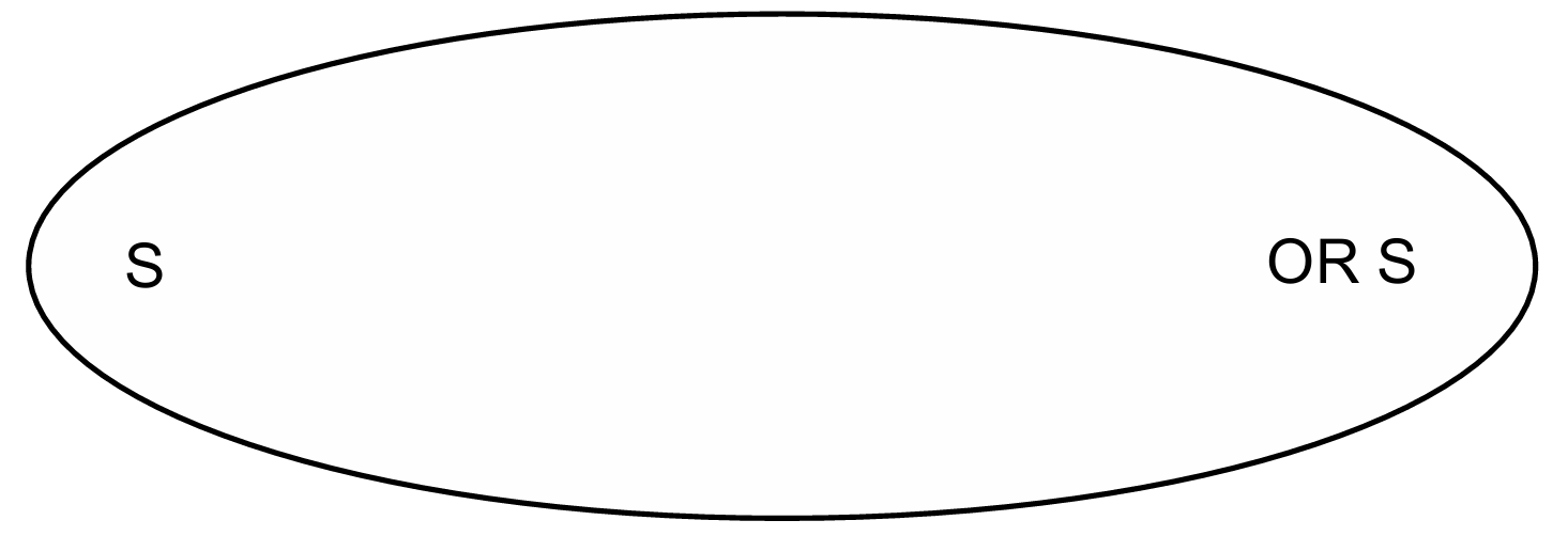 Correct Answer: An elongated elliptical shape with the Sun ($S$) at one focus.