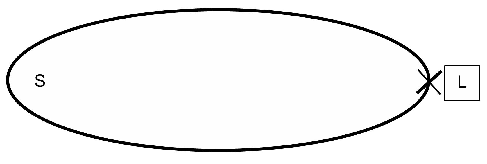 Correct Answer: Cross labeled $L$ placed at the point furthest from the Sun (aphelion).