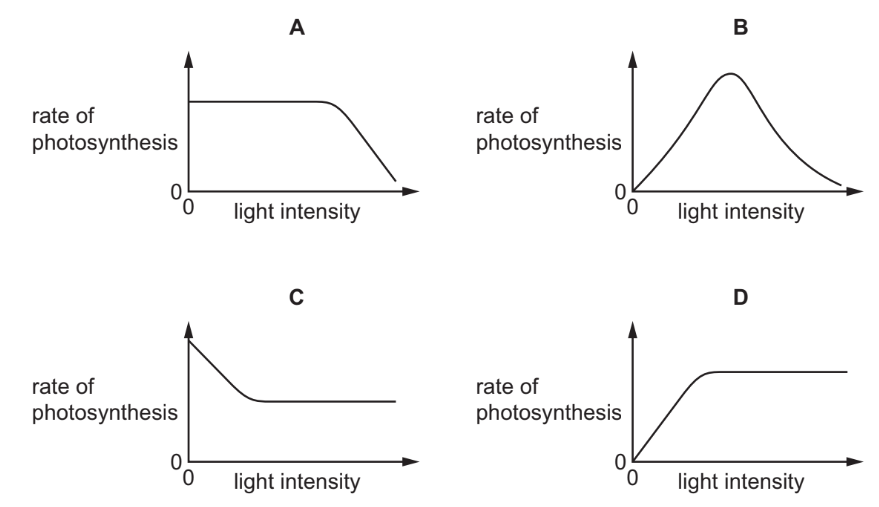 Which graph shows the effect of light intensity on the rate of photosynthesis, if all other factors are kept constant?