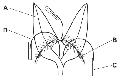 The diagram shows a wind-pollinated flower.