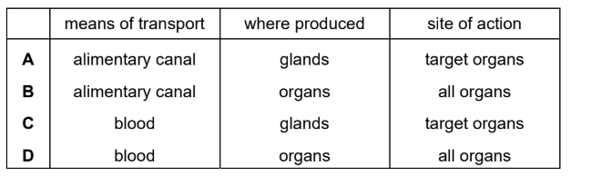 Which row about hormones is correct?