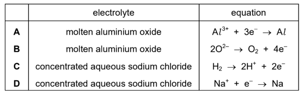 Which row shows the ionic half-equation for the reaction at the cathode during the electrolysis of the named electrolyte?