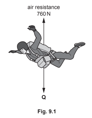 Fig. 9.1 shows a skydiver before the parachute opens.