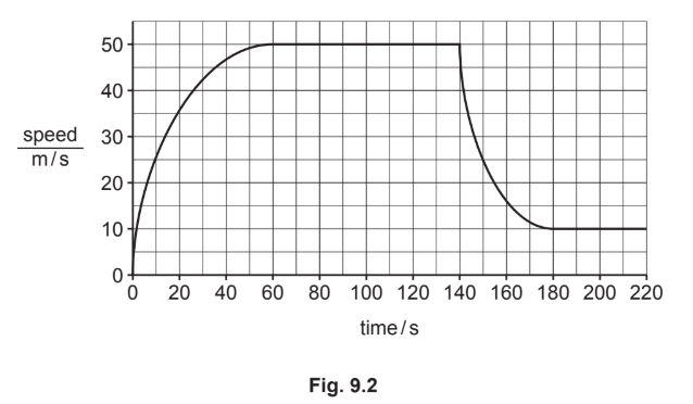 (b) Fig. 9.2 shows a speed–time graph for the skydiver’s journey.