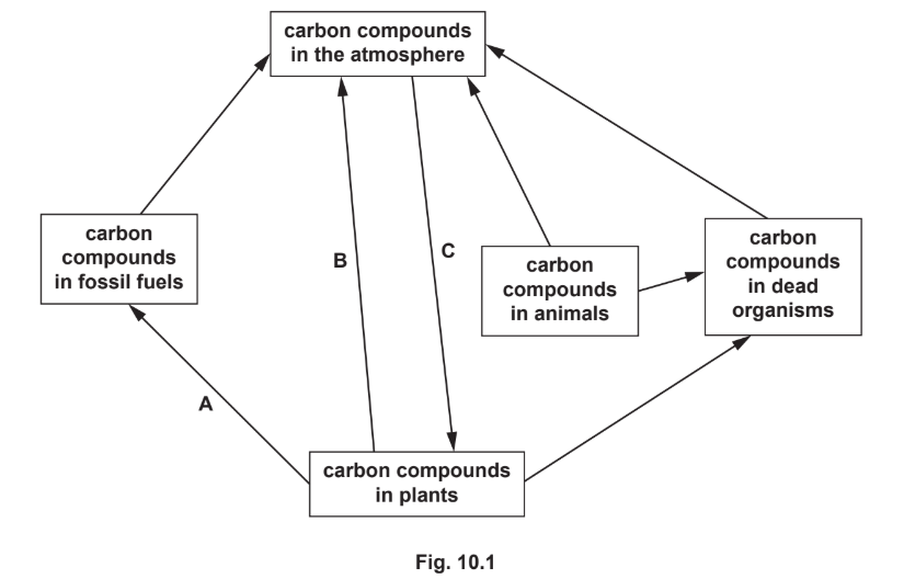 (a) Fig. 10.1 is a diagram of part of the carbon cycle.