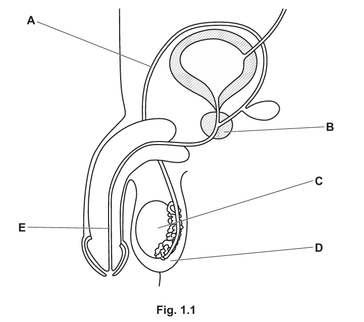 (a) Fig. 1.1 is a diagram of the male reproductive system in humans.