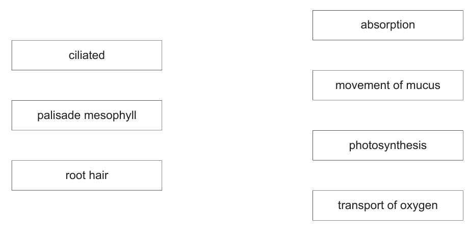 (d) Sperm and egg cells are specialised for their function of reproduction. The boxes on the left show some other specialised cells. The boxes on the right show some functions.