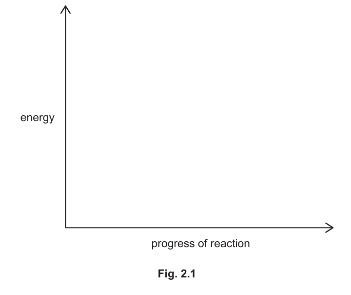 (ii) Use the axes shown in Fig. 2.1 to draw and label the energy level diagram for this reaction. Label:
