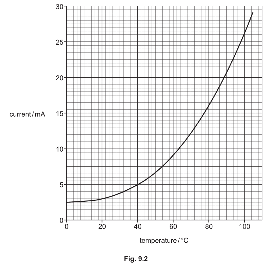 The temperature of the thermistor is 40°C. Calculate the time it takes for 1.0 C of charge to flow through the thermistor. (Sub-topic – P4.2.2)