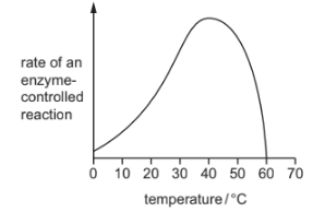 The graph shows the effect of temperature on the rate of an enzyme-controlled reaction.