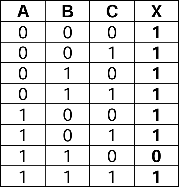 $X = \text{NOT } A \text{ OR } B \text{ AND } C \text{ OR NOT } B$