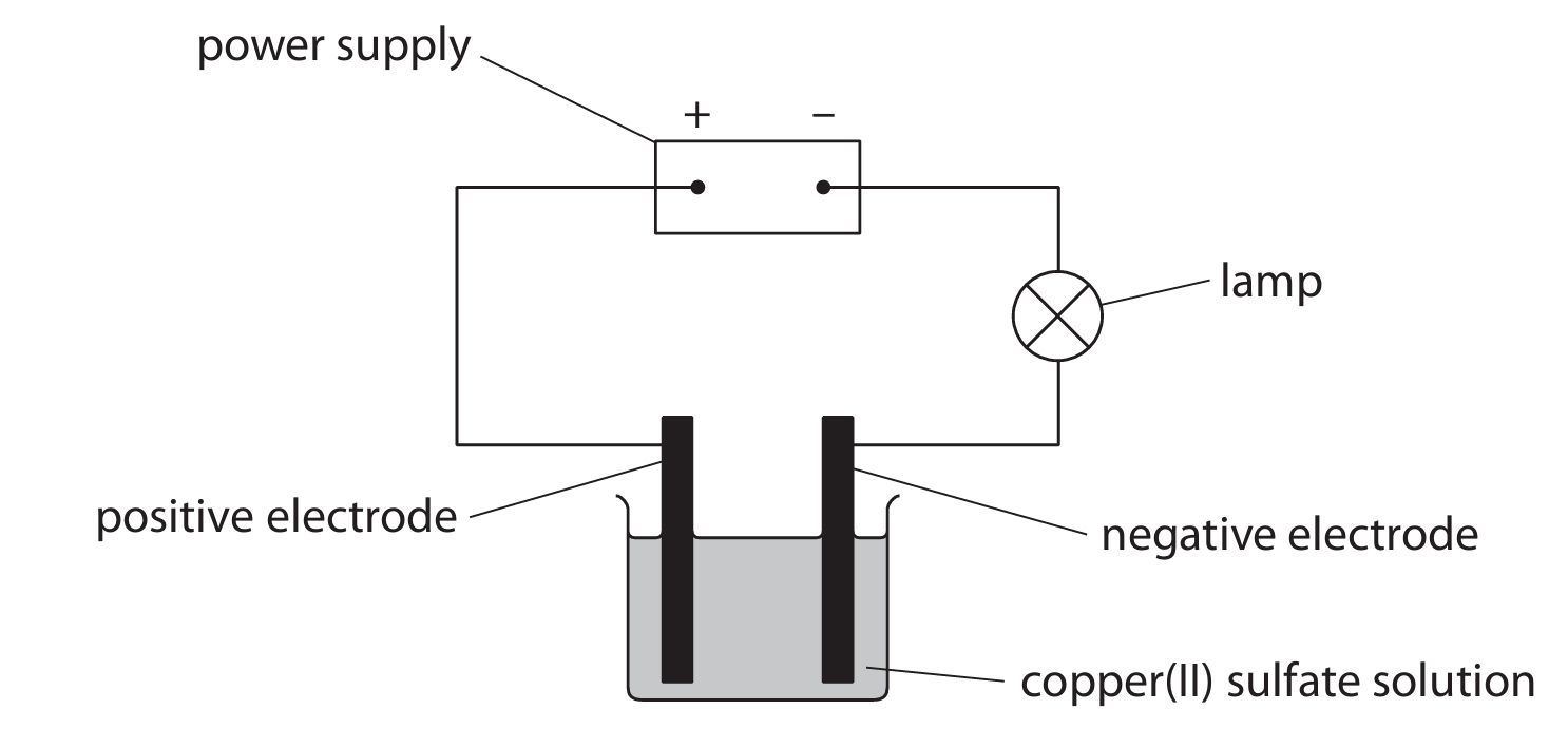 A student uses this apparatus to investigate the electrolysis of copper(II) sulfate solution.