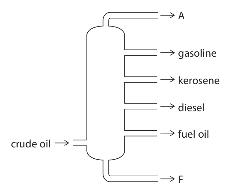 • Kerosene (the fraction) is tapped off / removed at its boiling point range (condenses and is removed).