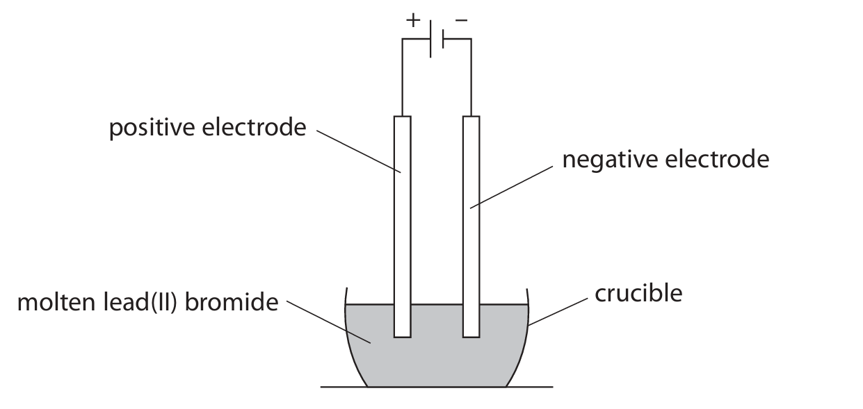 (c) The scientist electrolyses molten lead(II) bromide using this apparatus.