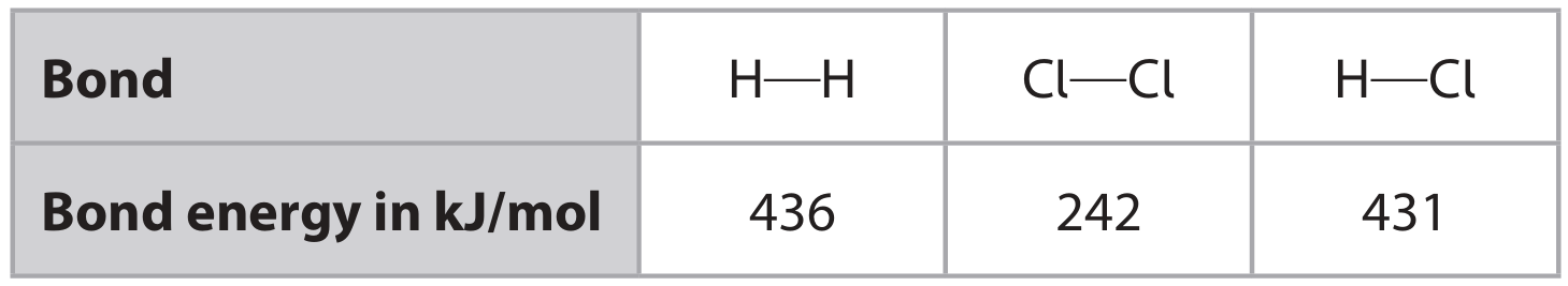 M1: Reactants bond energy = \(436 + 242 = 678\) kJ