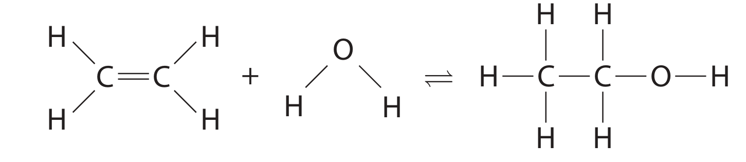 \[ \text{C}_2\text{H}_4(g) + \text{H}_2\text{O}(g) \rightleftharpoons \text{C}_2\text{H}_5\text{OH}(g) \]