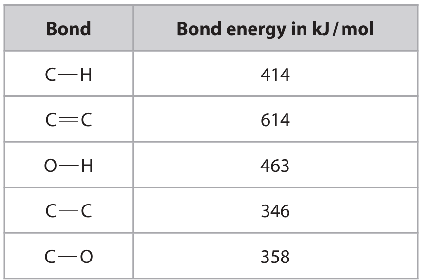 The table gives the bond energies.