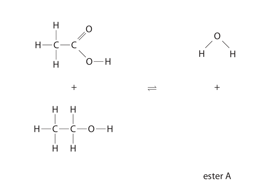 (c) Ethanoic acid reacts with ethanol to form ester A and water.