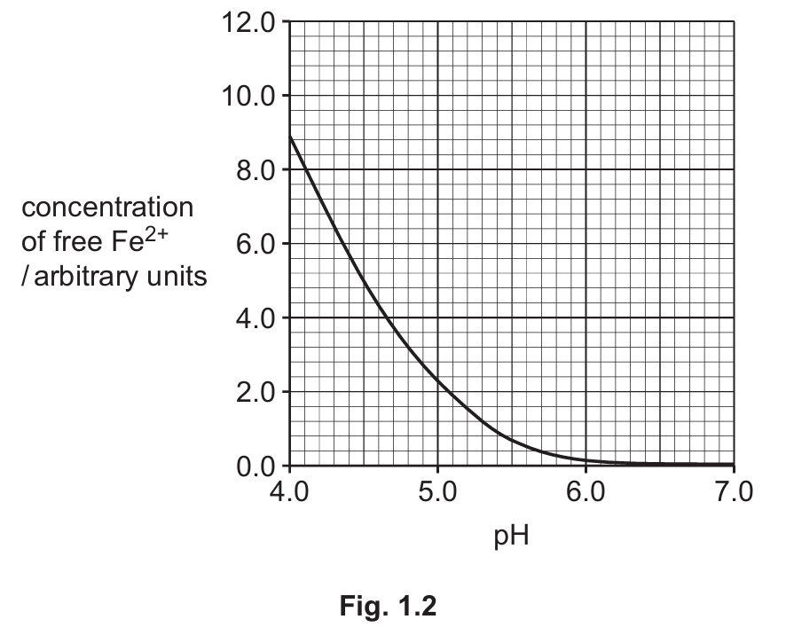 (i) With reference to Fig. 1.2, suggest and explain how the carbon dioxide released by the respiration of root hair cells can increase the concentration of free Fe2+ for absorption by root hair cells.