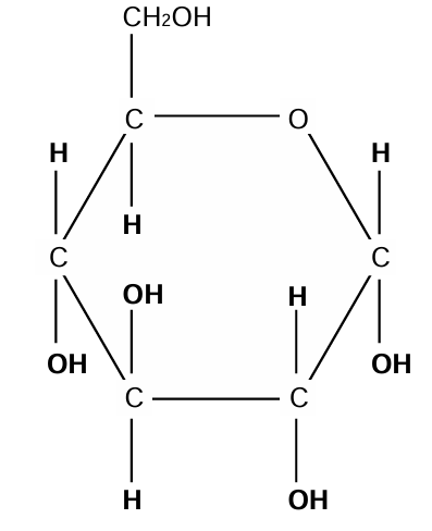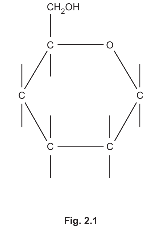 Complete Fig. 2.1 to show the structure of an \(\alpha\)-glucose molecule.