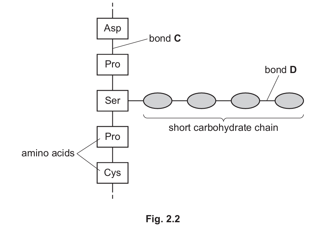 (b) Fig. 2.2 shows part of a glycoprotein molecule.