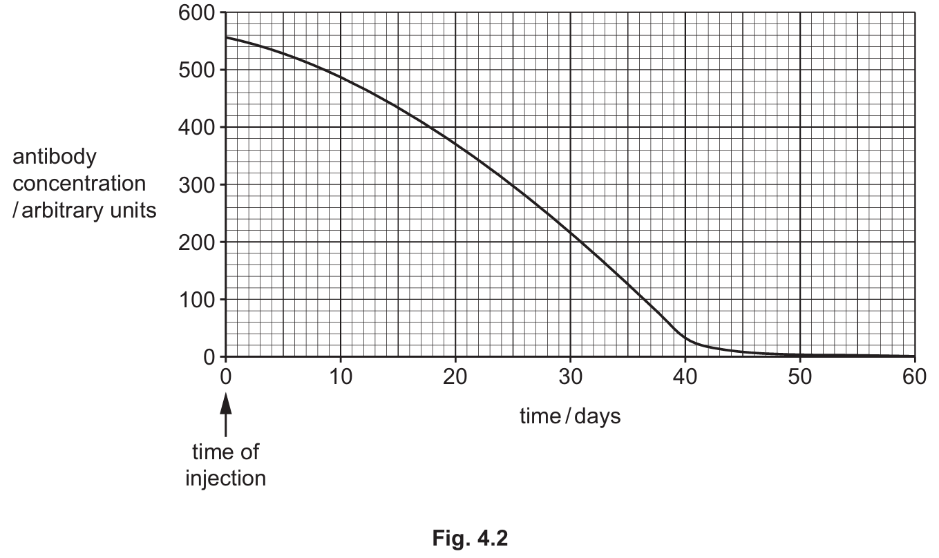 Fig. 4.2 shows the concentration of the antibody in the blood over the period of 60 days.