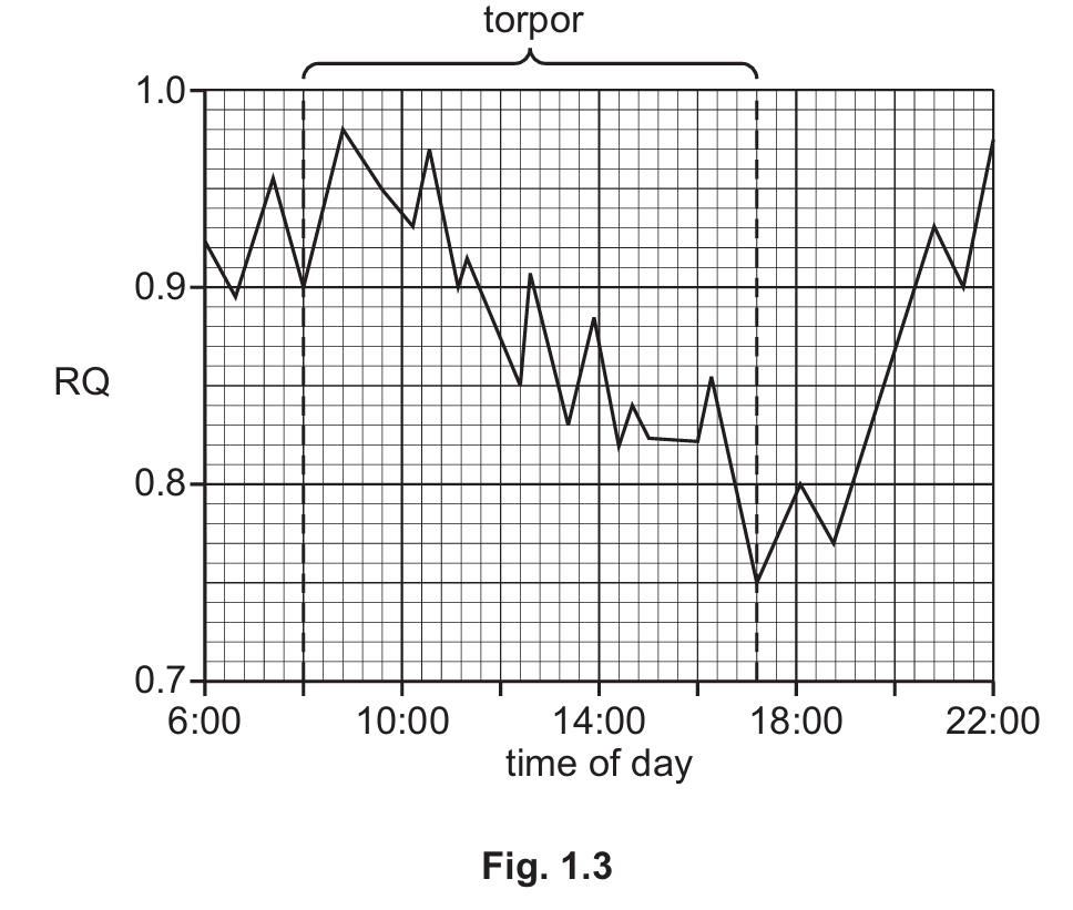 (i) Describe the trend shown during torpor in Fig. 1.3 and suggest an explanation for this trend.