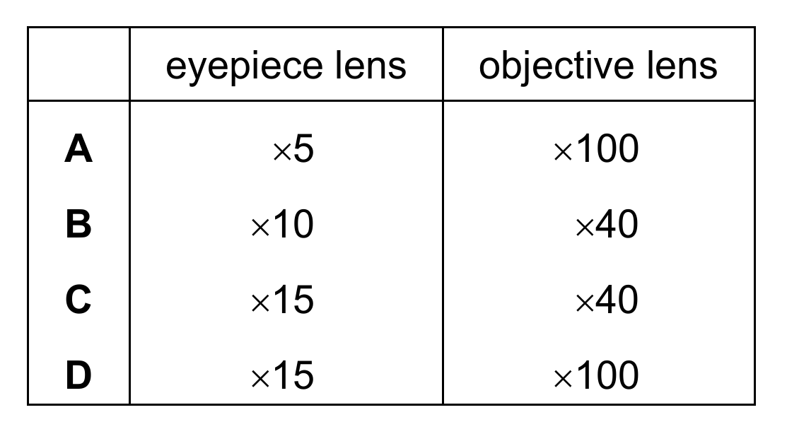 Which combination of lenses for a light microscope will give the greatest magnification?