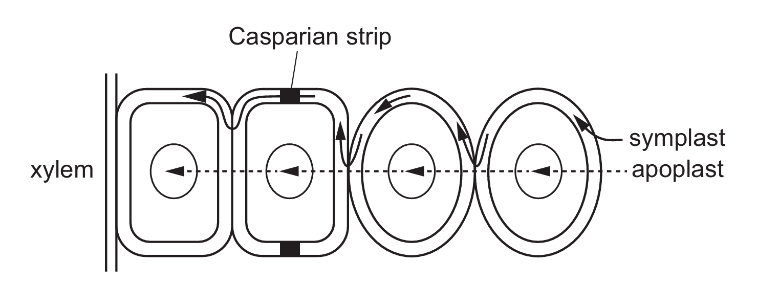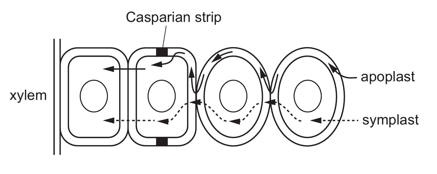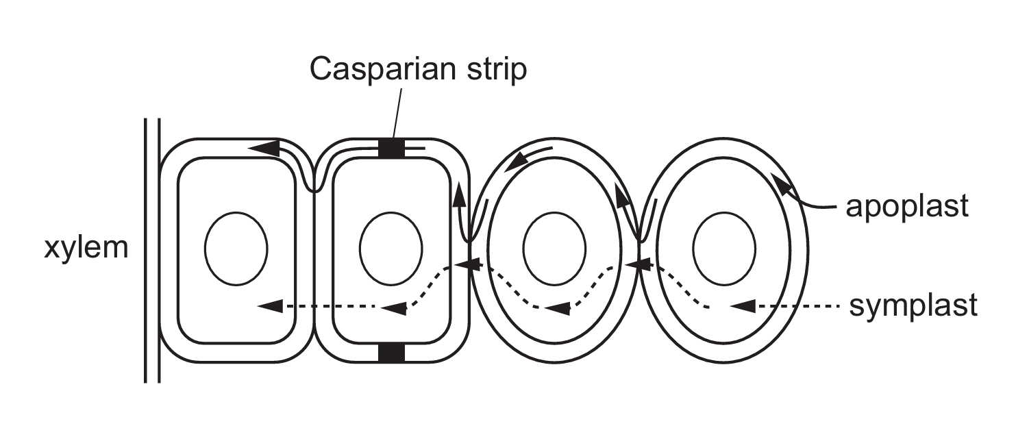 Four students sketched diagrams of the apoplast pathway and the symplast pathway.