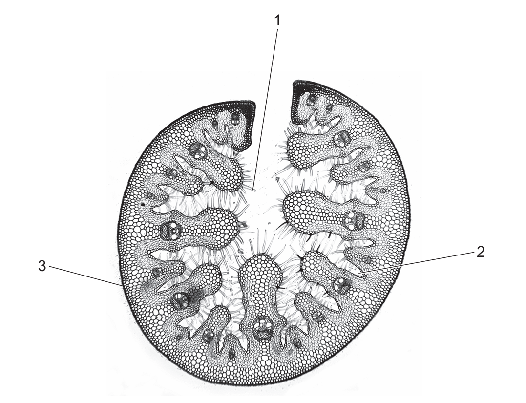 The photomicrograph shows some xerophytic adaptations in leaf tissue.