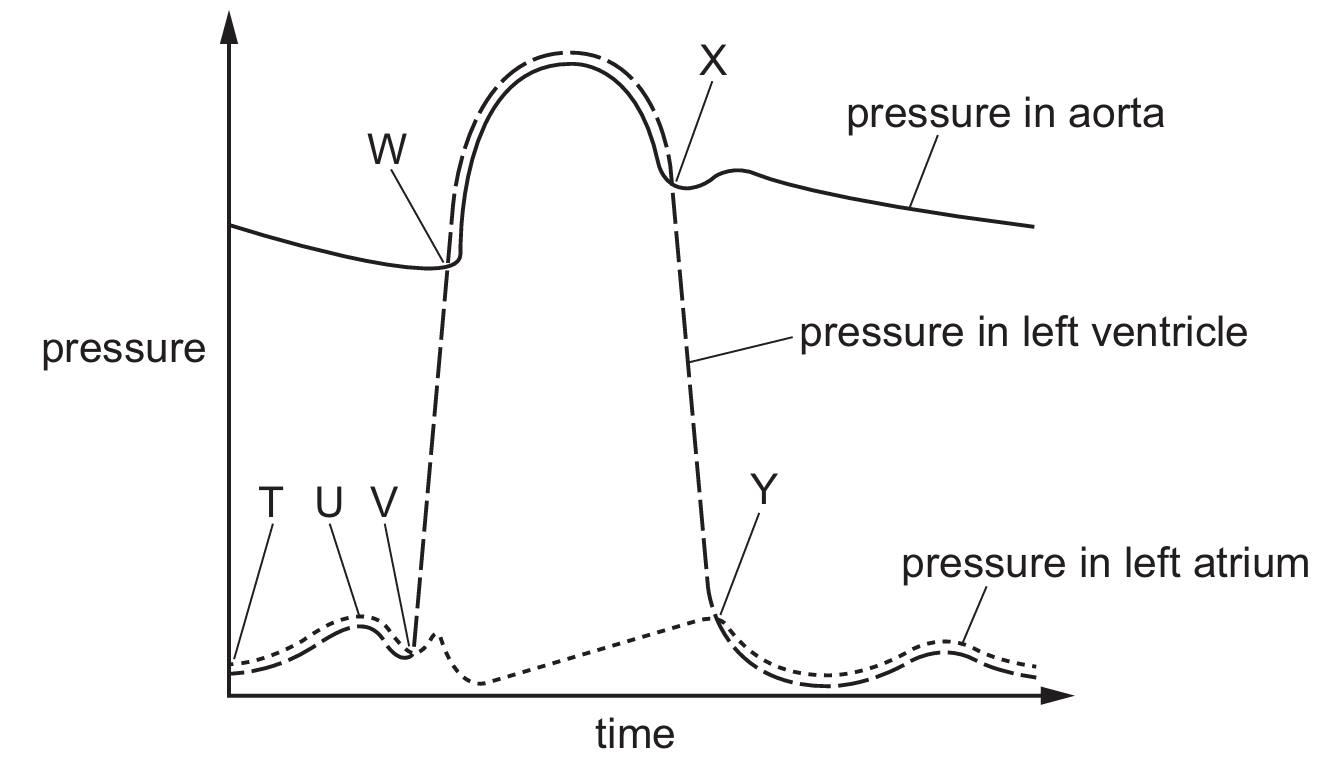 The graph shows some blood pressure changes that occur in a human during one cardiac cycle.